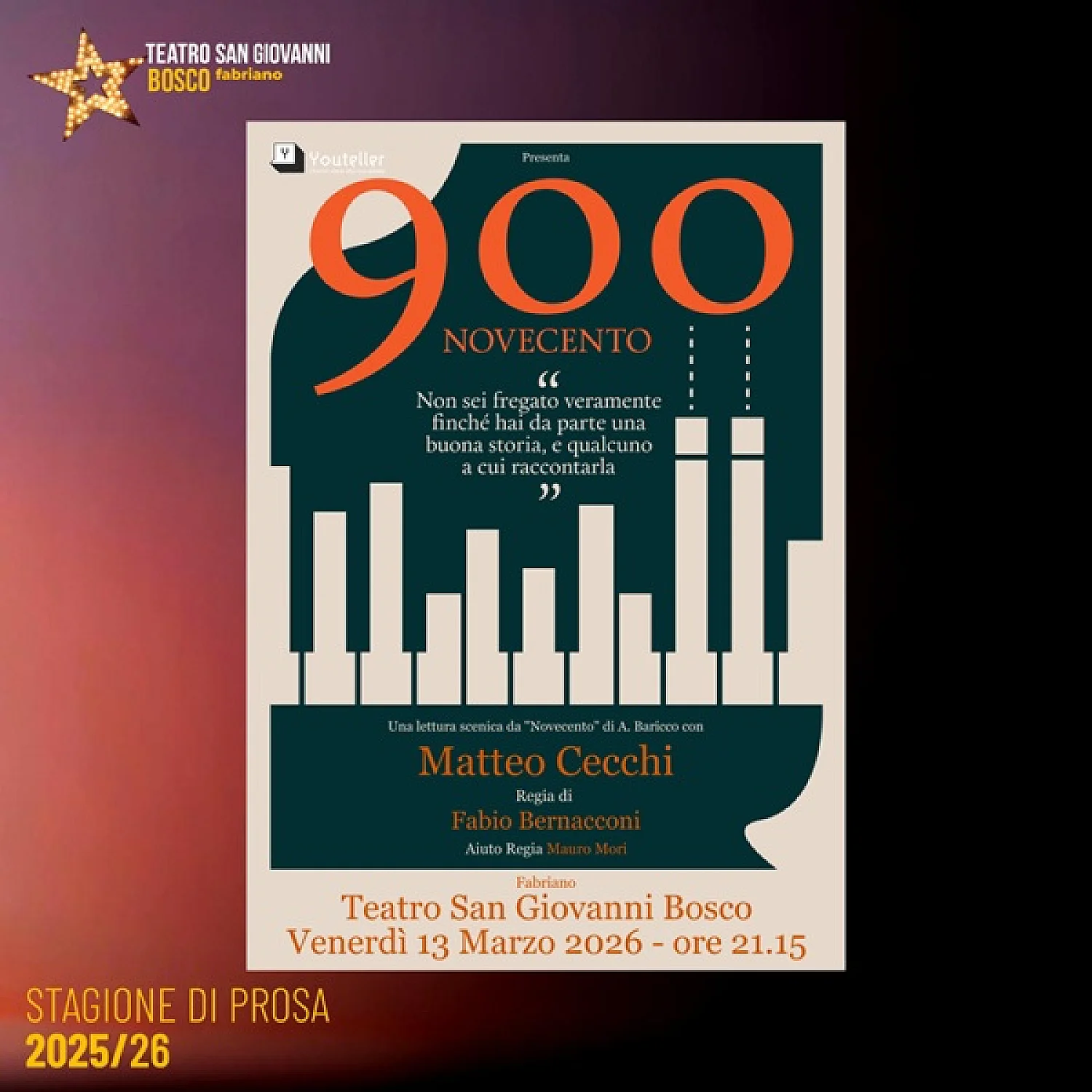Matteo Cecchi è Tim Tooney, trombettista fallito ma con una grande storia da raccontare. La storia di Novecento, il pianista leggendario che non è mai sceso dal Virginian. Una lettura teatrale del monologo di Alessandro Baricco, prodotto da Youteller.