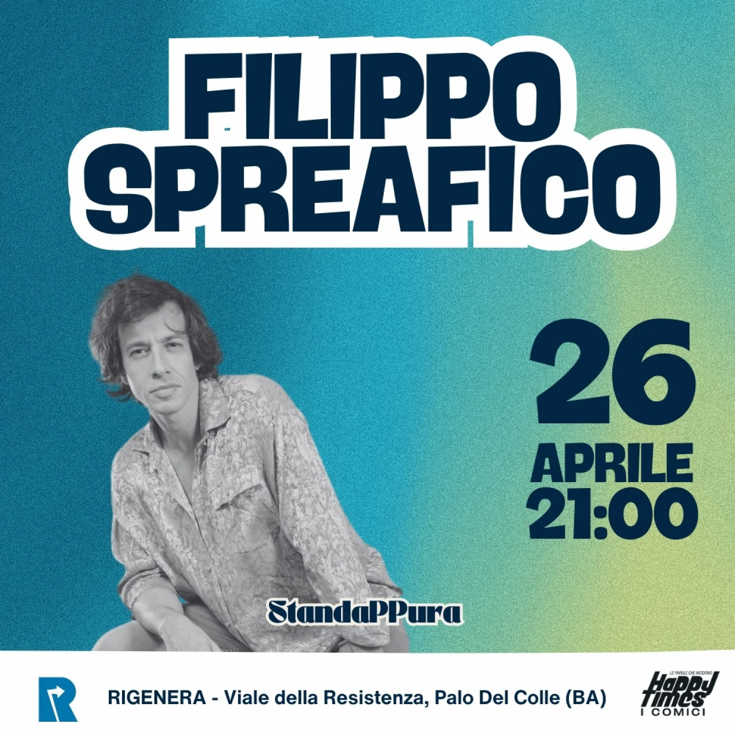 Il Laboratorio Urbano Rigenera e il collettivo Standappura presentano una serata evento con Filippo Spreafico, artista poliedrico capace di abbattere i confini tra il monologo comico e la performance musicale.