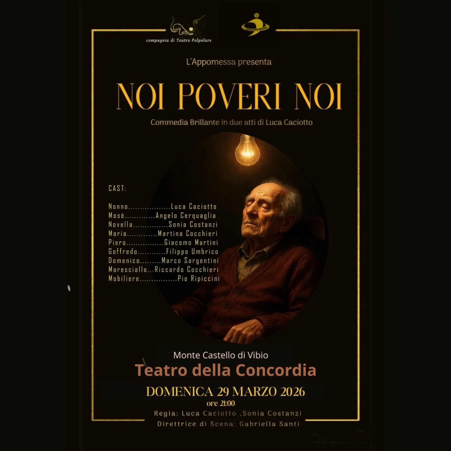 "Noi poveri noi", una commedia brillante in due atti di genere popolare, recitata in vernacolo umbro, scritta e diretta da Luca Caciotto.